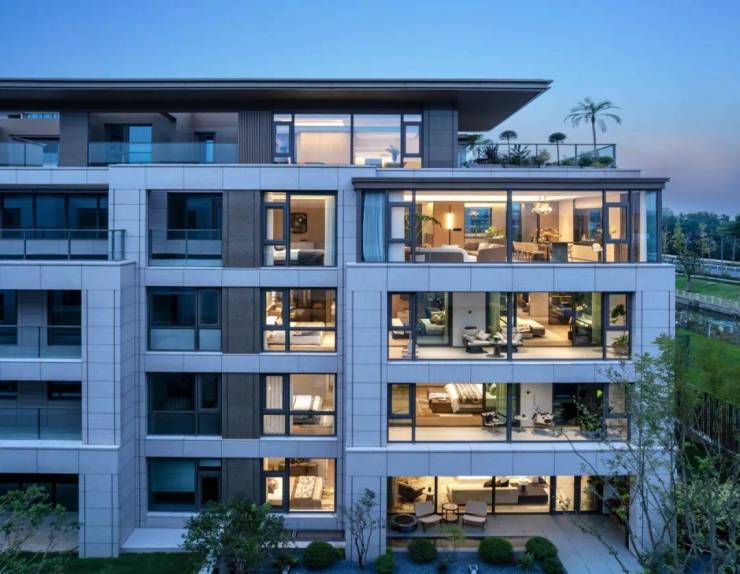业态规划:涵盖 10 栋 5 - 6 层花园洋房和 13 栋 5 层叠墅。建筑采用全石材干挂外立面搭配香槟金金属线条,质感十足。洋房为精装交付,叠墅为毛坯交付,洋房做到一梯一户,叠墅带有私享庭院,还设计了南向双开间阳台与主卧套房,提升居住私密性与舒适度。