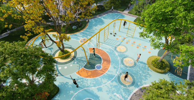 绿化率:40%,包含 1.8 万㎡中央景观园林,设计为 “两轴一环七园” 式社区。
