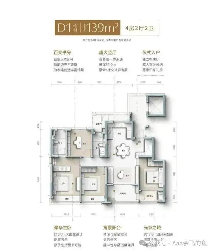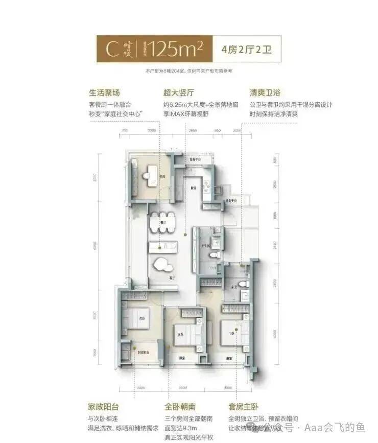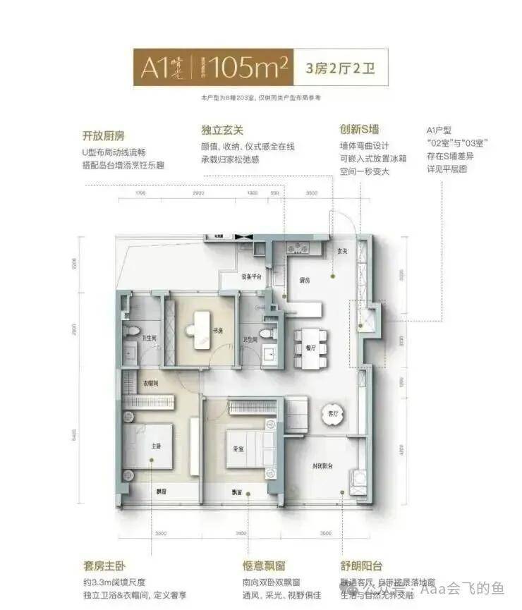 建面约105㎡晴光户型,不仅实现更优面积排布,更做到精神与审美的高度适配。在设计中,这间三房同样拥有南向大面宽,搭配S墙/开放式厨房/一体化餐客厅/多功能书房/酒店套房主卧等,将整个空间的开阔感和互动性做到极致,满足居住者对舒适、安逸的“精准需求”