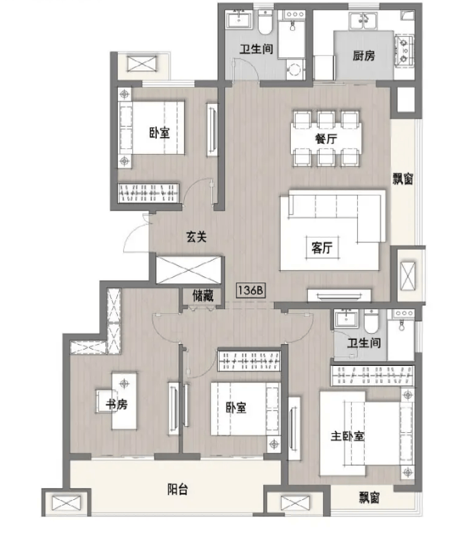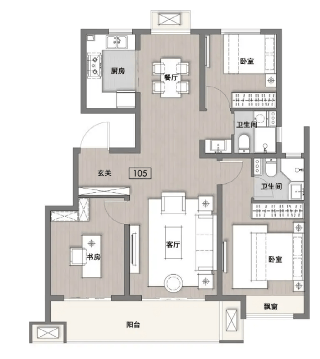 6、南向三开间及四开间宽境户型设计,高达约83%得房率