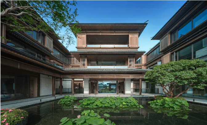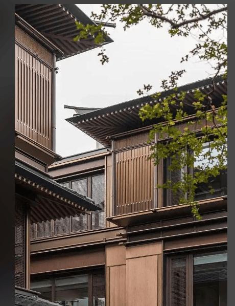 细节:斗拱、挂落、格栅、支摘窗等宋式元素,融入建筑细节,抬首之间,尽显东方贵气。