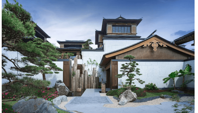 一进院门:假山叠石为景,曲径通幽,欲扬先抑,营造归家仪式感;