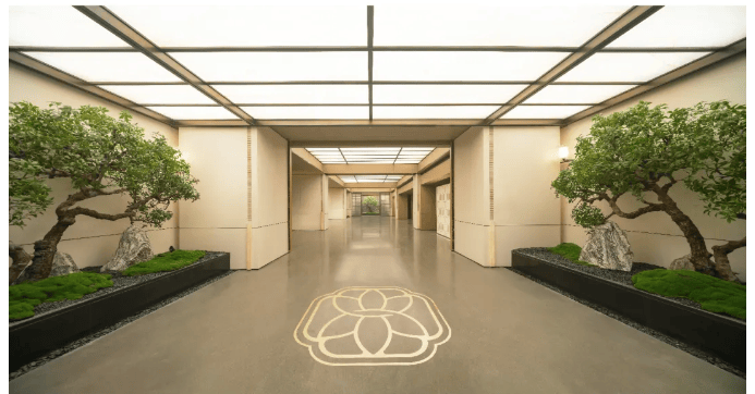 形制:整体采用 U 型围合、层层退台设计,消解建筑体量感,向内自成一方桃源,对外屏蔽喧嚣;