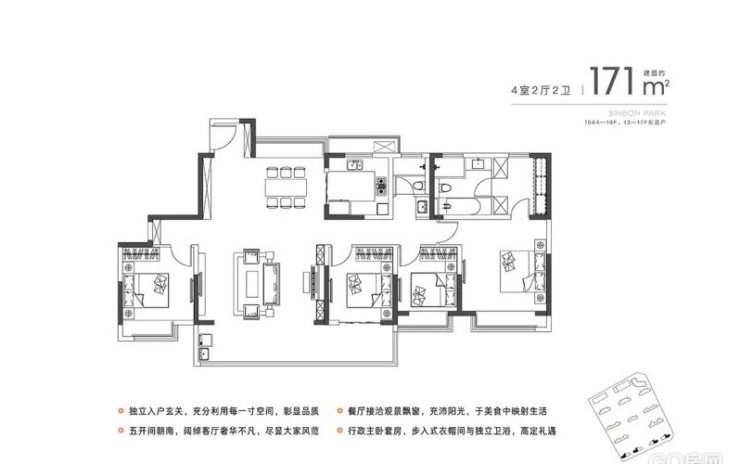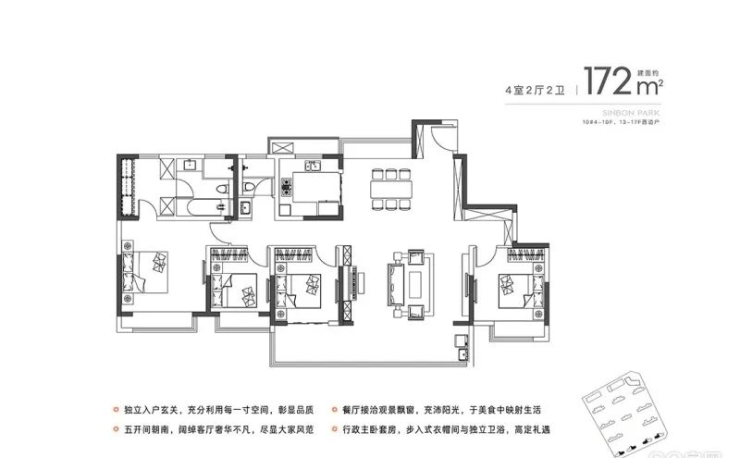 项目此次备案的11#楼,户型面积全部为171-172㎡的大户型,楼层总高17F,共计33套房源,备案均价27437元/㎡(其中包含3000元/㎡精装标准)。