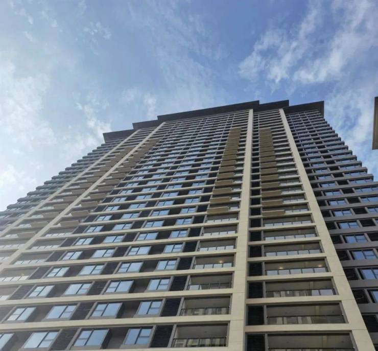站在楼下往上看,会发现米黄色外立面主基调,搭配浅色石漆以及大面积玻璃,在阳光下通体闪着光,十分耐看。