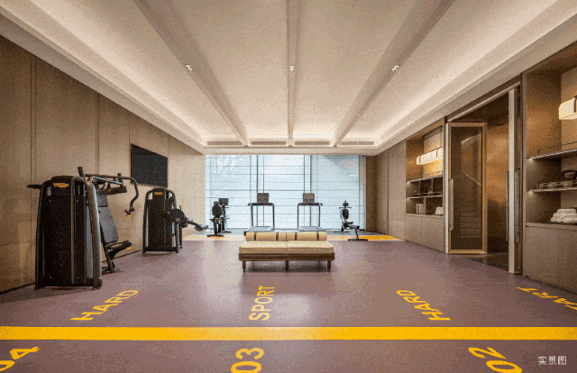 百合艺术墙布包裹的电梯轿厢,奢石铺陈的背景,共同上映归家艺境;地下光厅,菱形星空顶、线性灯带与天然奢石、古铜金属的精妙搭配,相当奢侈。