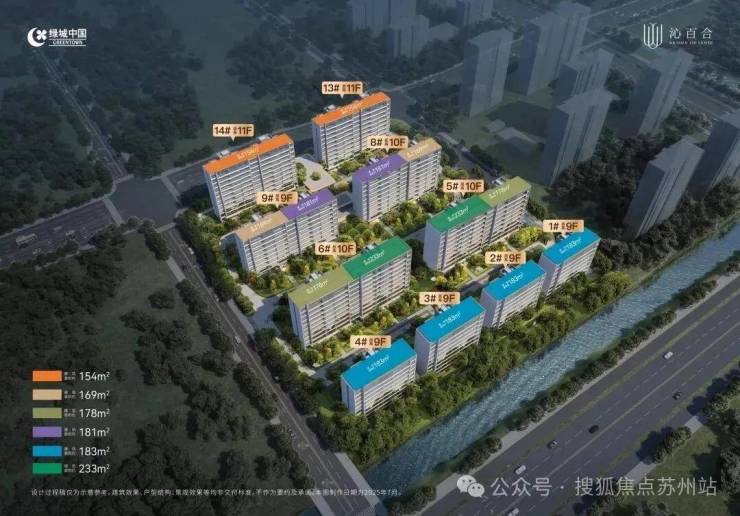 先看入门建面约154㎡户型,一梯两户,位于小区最后一排12/13#号楼,共84套房源,不靠金鸡湖大道,视野开阔。