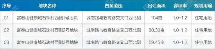 其中,富春山健康城石珠村西侧3宗地块(编号1、2、3),为相邻地块,且容积率均为1.1,面积最大的1号地块超过百亩,可打造成规模的低密品质住宅区,对有实力的房企来说,这是难得的细细雕琢作品的空间。