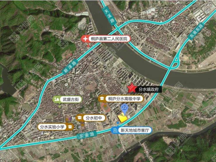 地块体量虽然不大,但胜在区位优势明显,毗邻分水镇政府,西侧即为嘉凯城城市客厅,周边生活配套完善,就近享有分水高级中学、分水初中、分水实验小学、桐庐第二人民医院等资源,板块重要的文旅资源武盛古街就位于地块旁侧。