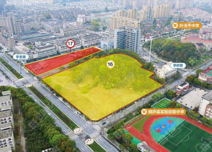 大联村留用地(编号15)有着难得的一线桐庐江景,优质属性一目了然;大联区块武举塘地块(编号16)的突出优势则体现在优质的学区资源,周边环绕着叶浅予中学、桐庐中学、学府小学、桐庐实验初级中学4所学校,教育资源的优势无可比拟。