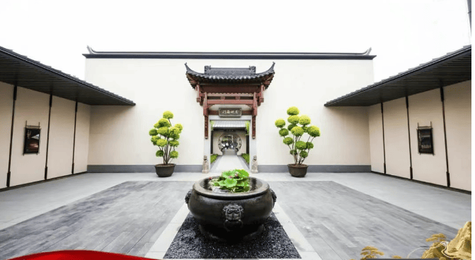 建筑设计:融合晋吴文化,将北方建筑的雄浑大气与江南园林的婉约灵秀相结合,以铝板、石材、真石漆等材质搭配玻璃栏板、锌钢栏杆,勾勒出极具辨识度的天幕美学建筑。