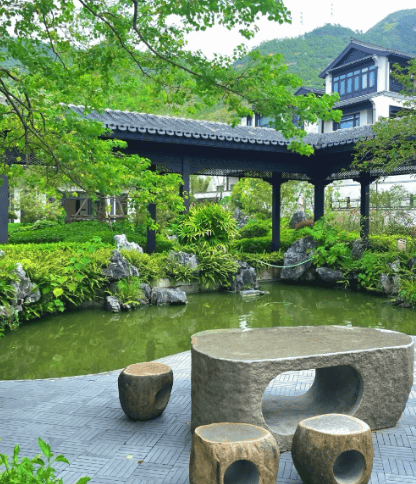容积率 / 绿化率:1.1(墅区超低密)/ 30%,宋韵园林、山水庭院景观。
