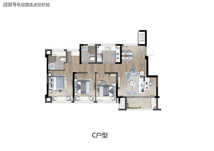 · 真正惊艳的是项目建面约105㎡C户型,无论格局还是细节都尽善尽美!