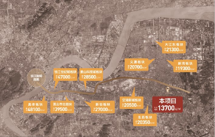 随着钱塘区的崛起,新房限价呈现着巨大的落差。西端奥体板块新房限价48100元/㎡;沿途的萧山市北板块限价39500元/㎡、萧山科技城板块限价达到28500元/㎡