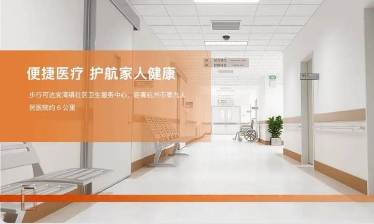 项目步行即可到达党湾镇社区卫生服务中心,距离杭州第九人民医院约6公里,无论是日常保健还是紧急就医,都能得到及时有效的处理,为家人的健康保驾护航。