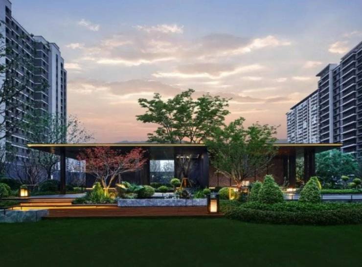 建筑为现代简约板楼,精装标准含中央空调、地暖、新风,龙湖标准化交付体系。