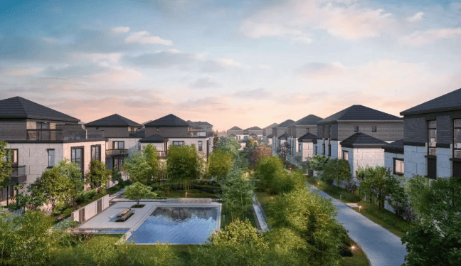 产品类型:规划有建面约 80-90㎡的四层电梯洋房和 148-175㎡的新中式合院别墅。