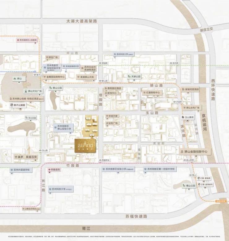 苏州博物馆(西馆)、狮山文化广场等文化地标,金鹰国际广场、淮海街等潮奢风向,苏州香格里拉大酒店、悦榕庄酒店等高奢酒店,狮山实验小学、苏州高新区实验小学等文脉高地(*教育设施与社区间的招生对应关系由当地政府教育主管部门确定,开发商对此无法控制),地铁1号线/3号线/5号线等便捷交通,狮子山、天狮公园等都会自然岛屿……弥足珍贵的土地,让正央席位拥有与生俱来的价值归属,也是真正的“国际都会生活聚场”。