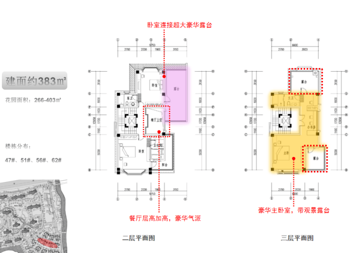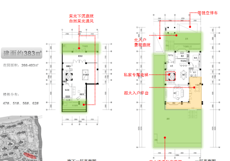 建面约383㎡双拼别墅,花园面积266-403㎡