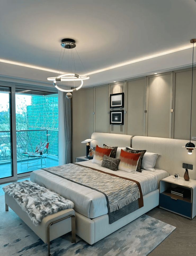 宋韵美学 + 品质精装:园林与外立面融合宋式元素,搭配现代材料,质感突出;