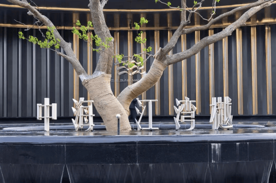 为契合周边环境,示范区建筑采⽤三角形布局,沿街⼤尺度的退让形成前场景观空间,利⽤弧形前场挑檐,弱化与街⾯形成的三⻆空间并向两边延伸,打造超⻓城市界⾯,实现酒店化落客体验,强调归家界⾯的仪式感。