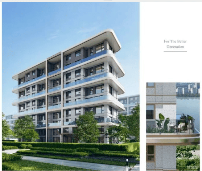 核心特色:户户环幕露台(180°–360°),部分赠送约 40㎡;得房率最高达91%;垂直绿化入户,无传统四代宅奇偶错层弊端;外立面双层通高玻璃 + 金属铝板,现代感强
