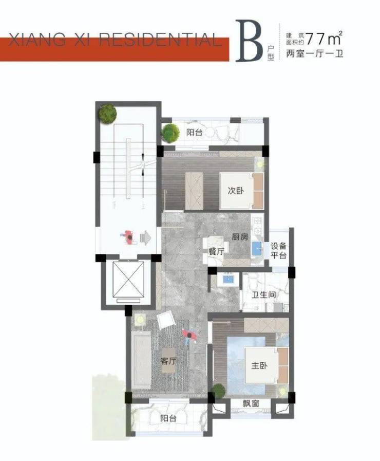 【户型面积】:高层建筑面积约77-85㎡