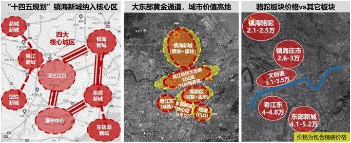 『四大核心区』“十四五规划”将镇海新城与泛三江口、东部新城、鄞州南部并列为“四大核芯区”,同时确立了“镇海—高新区—东部新城—东钱湖”的宁波大东部新发展轴,城市价值高能级区域。