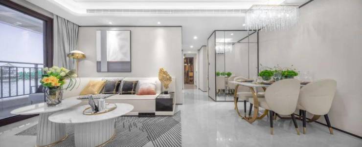 餐客一体化,省去过道空间,格局更通透阔绰,周末朋友小聚,在微醺中畅谈心扉;主卧套房高配独立卫浴、预留衣帽间,南向飘窗与风景互动,爱人倚窗而坐,浪漫岁月。