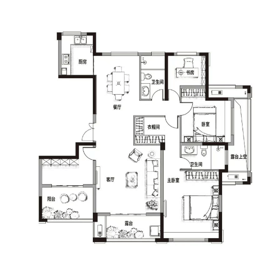 产品面积:有建筑面积约 120㎡、140㎡、145㎡的高层。