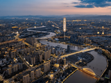 黄金主脉:世纪街、中兴大道黄金十字口,临近于越快速路休闲之芯:袍江文化体育广场、水乡文化公园、犭央犭茶湖、镜湖国家城市湿地公园