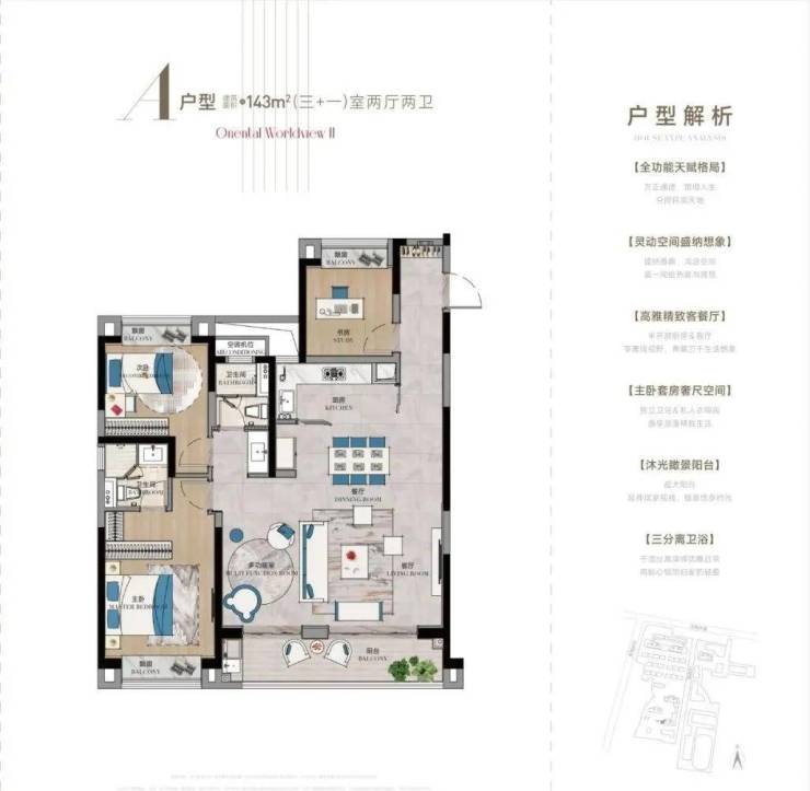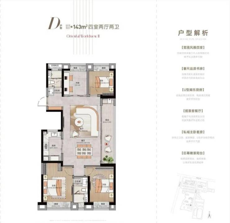 【143㎡奢居四房】产品全线焕新,功能布局、空间尺度比肩市场超180㎡大平层产品。