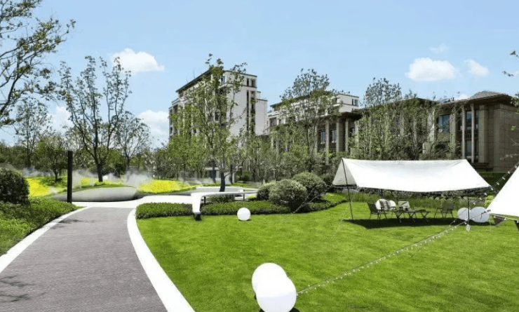 规划中央景观轴、宅间组团绿化,配约 800 米有氧环形跑道、全龄活动区(儿童乐园、老年休闲广场)、社区泛会所、户外会客厅;部分楼栋底层架空,提升社区通透性与活动空间;社区内景观层次丰富,与周边太湖生态呼应。