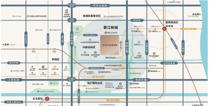 娄江新城位于太仓主城东部,北至苏昆太高速,西至沈海高速,南至上海界,东至沪苏通铁路,总面积约50平方公里,形成以“一心两轴三核四区” 的空间规划结构,将打造成为太仓主城东部副中心。