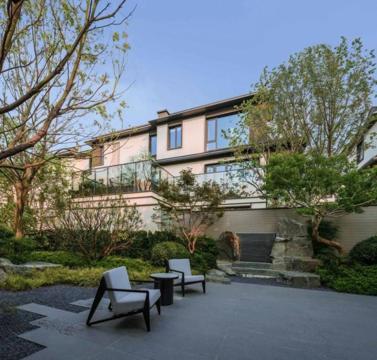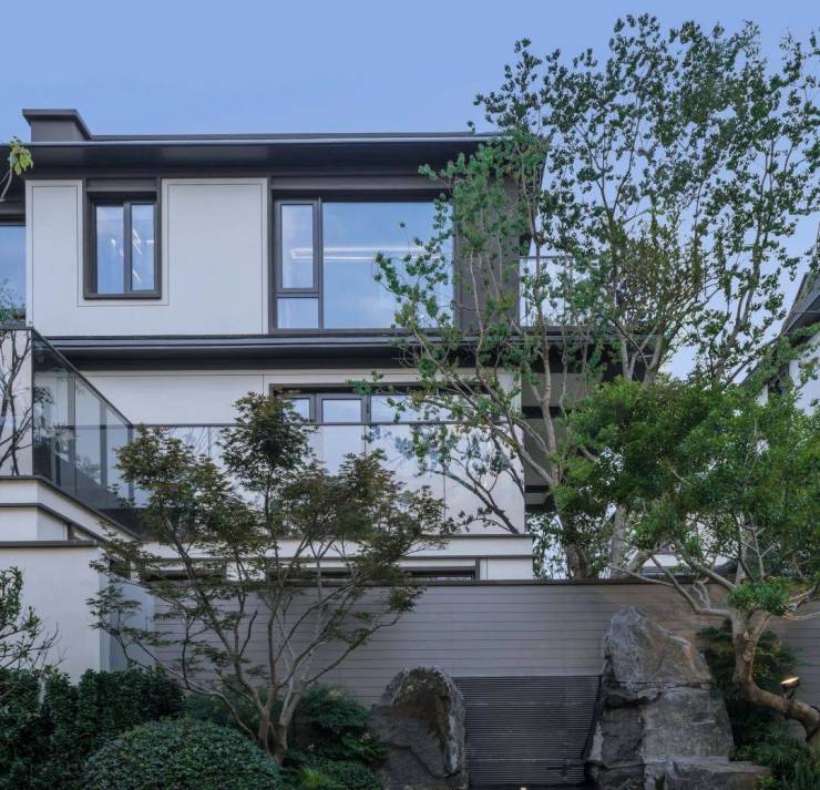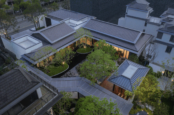 建筑与园林:宋式素雅风格,粉墙黛瓦 + 坡屋顶;五重归家礼序(车马院 - 望虞楼 - 游园 - 巷道 - 私家宅邸),2.6 米高墙围合私密庭院,L 型合院 270° 采光,窗地比高达 45%;
