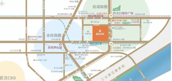 医疗配套:楼盘周边医疗资源较为丰富,直线 3km 范围内有 7 个一级及以上医院。其中武汉市第八医院 (后湖院区) 距离楼盘 626m,武汉市汉口医院 (主院区) 距离楼盘 2km,可为居民医疗需求提供保障。