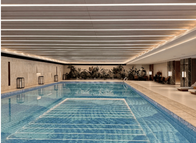 社区配套:项目打造围合式社区,设有风雨连廊、酒店式落客区、度假风园林等,还配备约1000㎡下沉式会所,内含恒温泳池、瑜伽室、健身房等设施,满足业主的休闲需求。