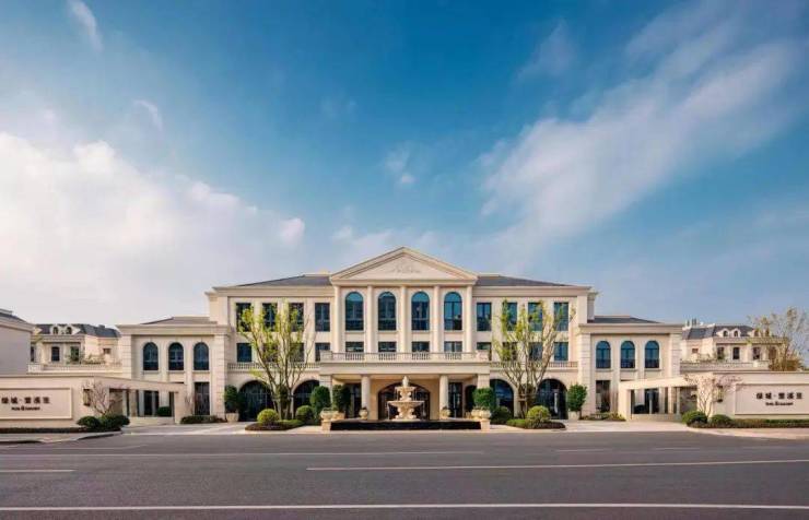 建筑风格:承袭法式建筑的优雅与浪漫,外立面采用全石材干挂,搭配雕花廊柱、老虎窗、斜坡屋顶等经典法式元素,彰显尊贵气质。