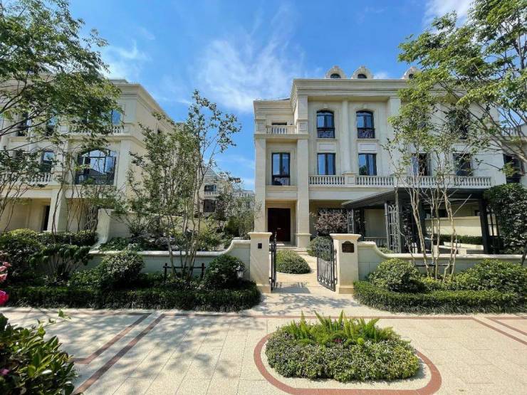 产品类型:绿城经典法式纯墅住区,住宅部分由 25 幢四联排、27 幢双联排组成。