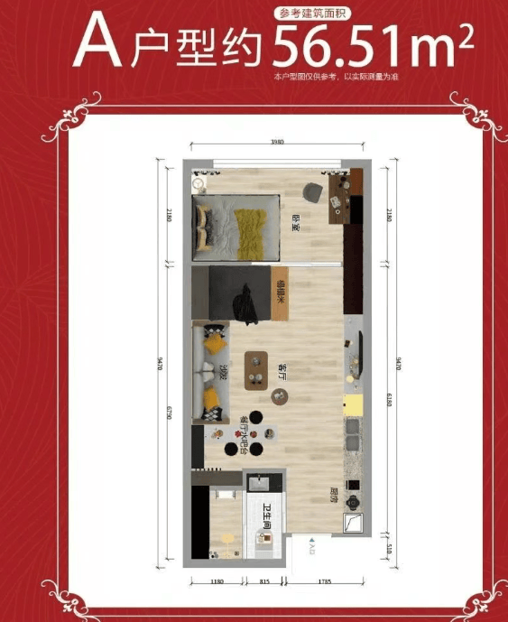 主力户型:以 50-64㎡为主,其中 50㎡-57㎡为主力户型,64㎡面积也可做两房。