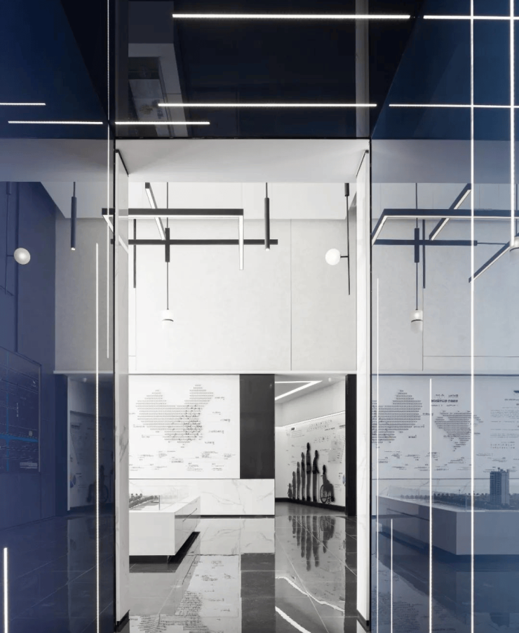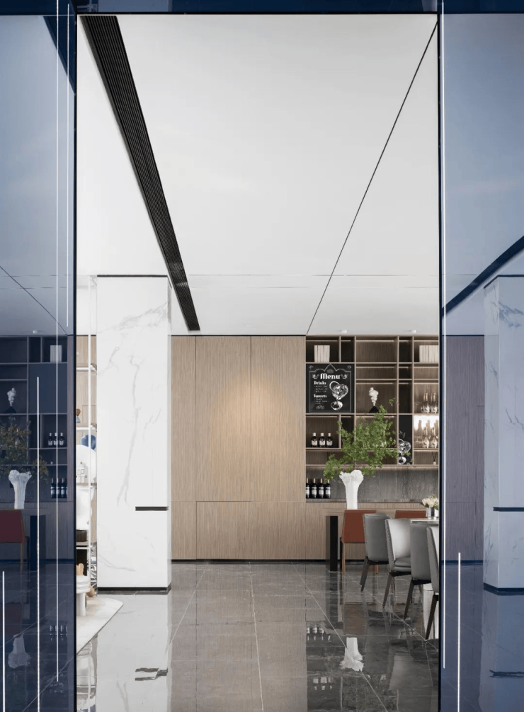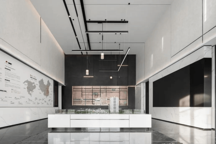 黑白的基础色调营造出稳重、冷静与理性的质感。铁艺线条干净简洁,质感单纯,空间回归本质,简洁的几何图形放大延伸成空间的精神符号,融入到环境之中。