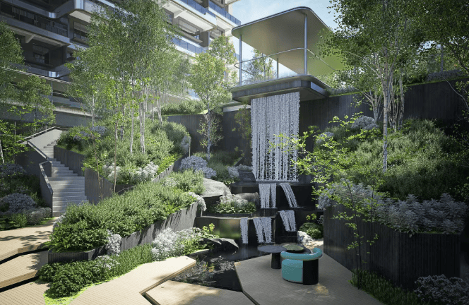 园林景观:打造立体生态住宅,构建纯改善社区,将森林花园搬进都市生活,每户均享有大进深的空中庭院。