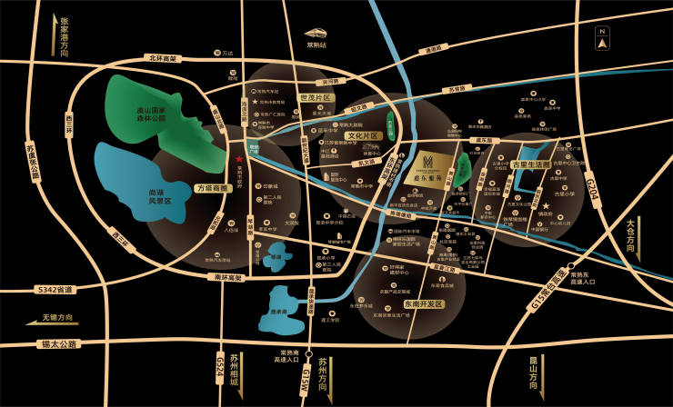 商业配套:距离文化片区直线距离约 900 米,周边有常熟大剧院、国际展览中心、常熟中江广场、印象城、星光天地等。小区自带底商,还有世茂商圈,古里星光天地等,可满足购物、娱乐需求。