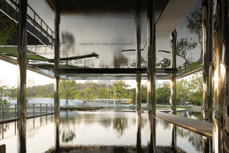 拟山仿谷的夹道,山水环绕,浮光叠影间是可以拥有的恬静夏日,就像,这片扭转的光影雕塑。
