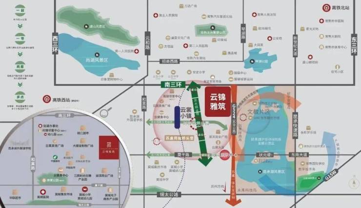 云锦雅筑,近邻G524,深度融入苏州半小时生活圈;南三环畅行,通达常熟各大繁华商圈。苏虞张线与轨交10号线(在建)贯通运营,沿线串联相城区高铁新城、莫城科创园等重要城市节点。