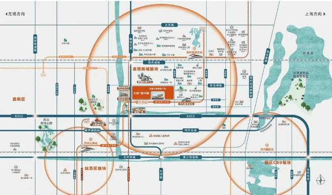 医疗配套:东北侧约 4.5 公里是复旦大学附属中山医院长三角国际医院,约 4 公里处苏州高铁新城医院已落成开业24。