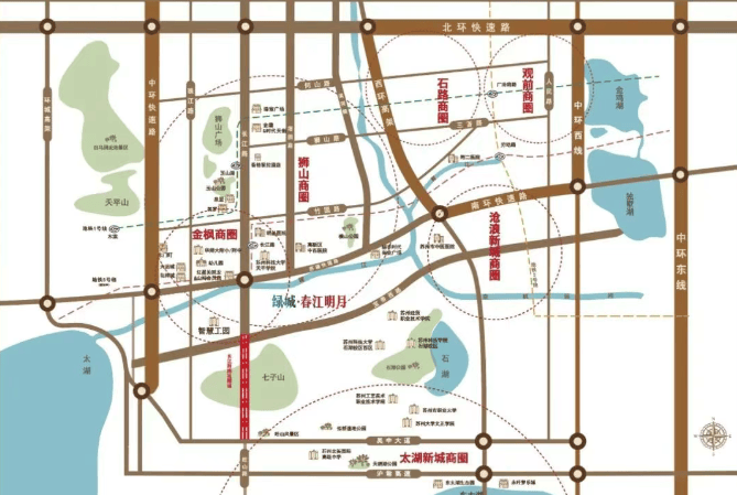 休闲配套:周边 3 公里内有 40 余个公园及休闲广场,如木渎凯马广场、观音庙等,同时小区拥揽石湖景区、玉山公园、狮山广场等自然人文景观,自然环境优美,休闲娱乐方便。