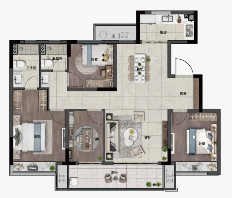 同时,三房全明通透,主次卧均朝南,自带飘窗,为生活增添灵动写意氛围。闲暇之余,在飘窗阅读瞰景,不失为调节忙碌生活的放松空间。