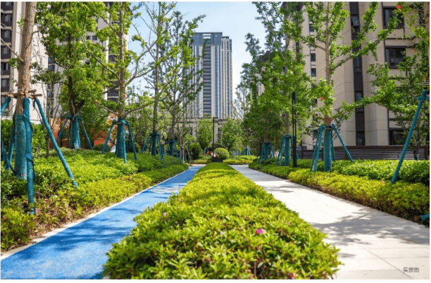 环境宜居是春风南岸促进建筑品质提升的重要方面,在住宅室外,项目通过入渗、滞蓄、调蓄和收集利用,控制场地径流总量,场地年径流总量控制率达55%。项目还采用乔、灌、草相结合的复层绿化形成空间互补和重叠的效果,降低环境噪声。
