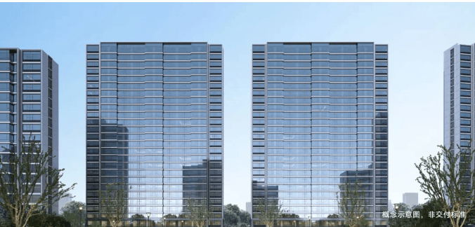 项目整体立面形态采用现代风格, 项目绿地率约为 35%,东地块容积率 2.3,西地块 2.4,共由 15 栋 17 至 26 层 的住宅, 1 栋 21 层的保障房(120 户)组成。